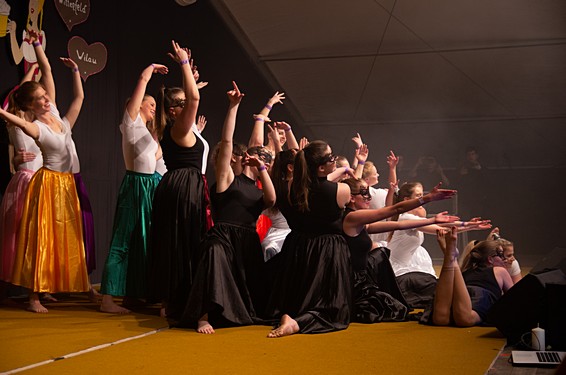 Eine wahrlich zauberhafte Darbietung mit einer verrückten Märchenwelt , mitten im Kampf "Gut gegen Böse" wurde dann von 22 Frauen und drei Tanzformationen geboten, dies unter der Leitung von Sarah Riedel von den "Bailandos", den "Uniteds" und den "Black Jewels".
