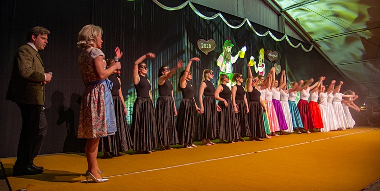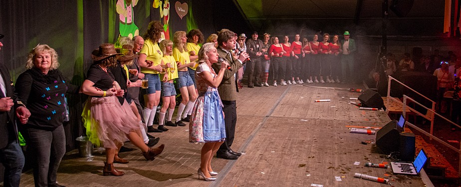Dann begrüßte das Moderatorenpaar "Marianne und Michael" mit einem Servus aus dem Musikantenstadl und einem dreifachen WILAU die Gäste. Hinter den beiden verbargen sich Claudia Strotkemper und Dominik Roling.