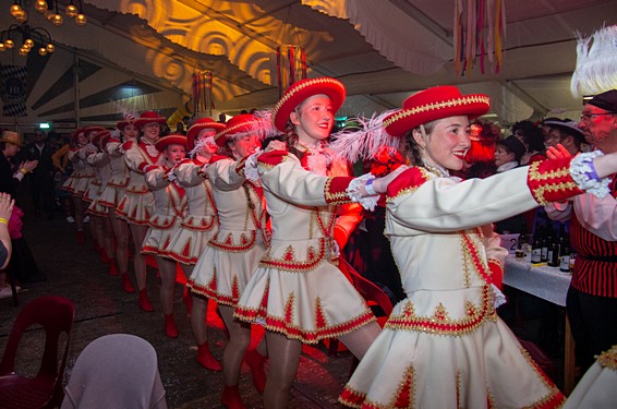 Einen tollen Auftritt bekamen die Goxeler Narren dann von der 1. Großen Tanzgarde der KAGEO aus Holtwick geboten, Die Gäste aus Holtwick waren mit ihrem amtierenden Prinzenpaar und dem Vorstand nach Goxel gekommen.