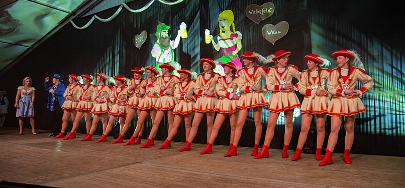 Volker Barenbrügge, der vor wenigen Wochen neu gewählte Vorsitzende der Nachbarschaft Wittenfeld, begrüßte die Narren im voll besetzten Festzelt zum Büttabend mit einem kräftigen WILAU! Er bedankte sich bei seiner Vorgängerin Maria Lammering, die das Amt zehn Jahre inne hatte.