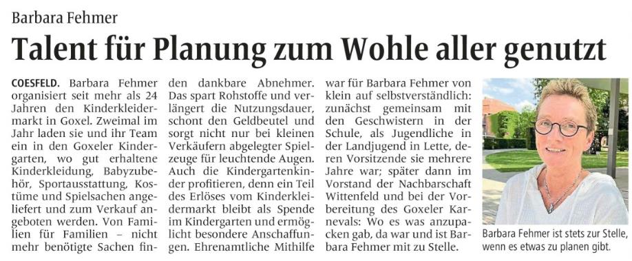 Auszüge aus der "Allgemeinen Zeitung" vom 19.08.23 mit den Presseberichten der Stadt Coesfeld: