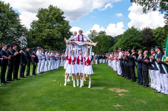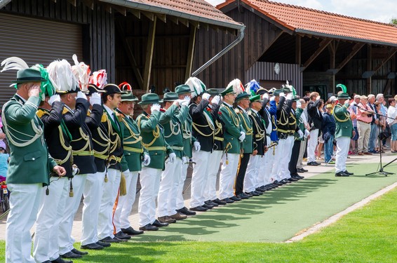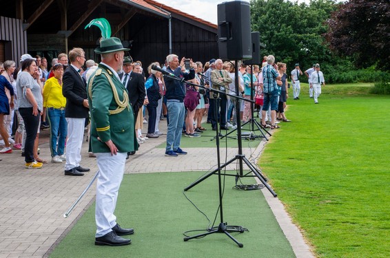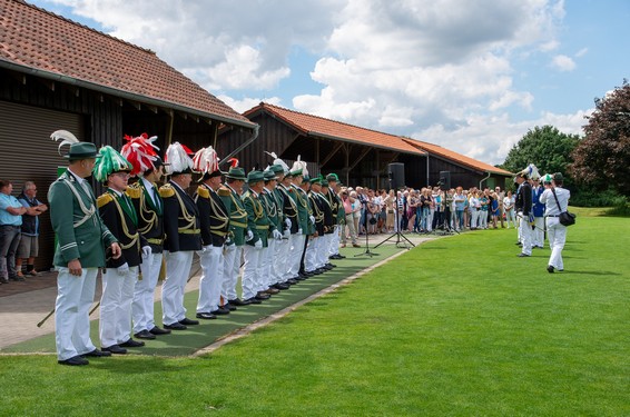 Zusammen mit rund 20 anderen Gastvereinen überbrachten die Goxeler Schützen die Glückwünsche zum Jubiläum.