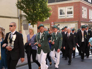 Auf dem Marsch zum Marktplatz zum Treffen mit allen Coesfelder Schützenvereinen