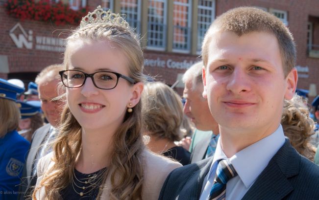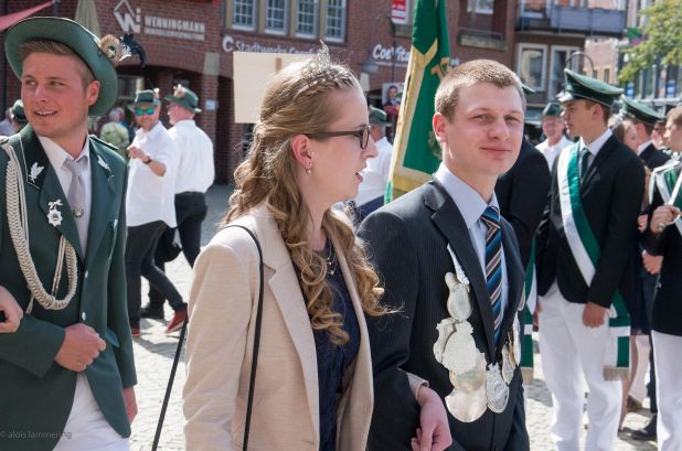 Das amtierende Goxeler Königspaar Sven Hermanns und Kathrin Borgert mit Gefolge waren natürlich auch dabei.