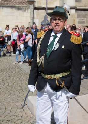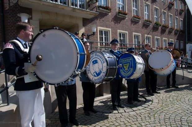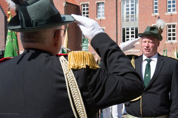Begrüßung vor dem Rathaus durch Bürgermeister Heinz Öhmann, Pfarrer Johannes Hammans und Holger Kaup, links Stadtschützenkönig 2012 Anfreas Haselhoff
