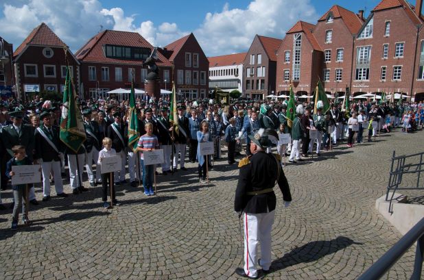 Aufmarsch aller Vereine auf dem Marktplatz ...