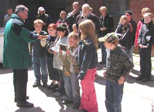 Vorsitzender Rolf Schüttelhöfer ehrt das Kinder-Klumpen-Königspaar mit Gefolgt