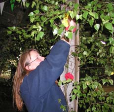 Fleißige Damenhände bringen Rosen an, sogar Königin Maria legt Hand an!