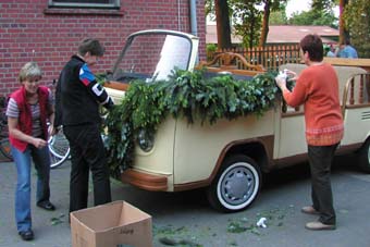 Auch der Königswagen wird für die kommenden Tage mit Grün und mehr bestückt.