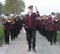 Unter Begleitung des Jugendblasorchesters Hochmoor zogen die Goxeler Schützen am Gewehrabend (23. April) zum Auftakt des diesjährigen Schützenfestes zur Vogelstange.