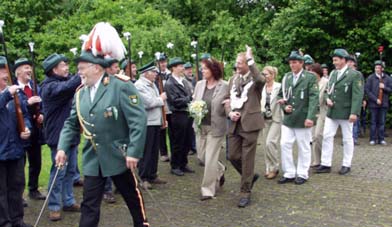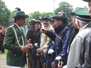 Nach der Messfeier und dem Totengedenken konnte das Vorjahrskönigspaar Norbert Rawert und Sigrid Schering ein letztes Mal vor der Truppe antreten. Norbert wünschte sich und allen ein schönes Fest.