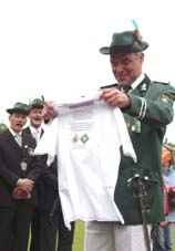 Letztmals war Günther Golin als Oberfeldwebel aktiv. Vom Vorsitzenden Alois Bosman erhielt er u.a. ein T-Shirt zur Erinnerung an seine Offizierszeit.