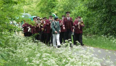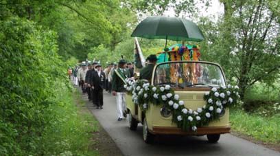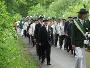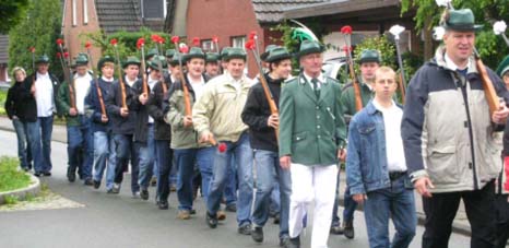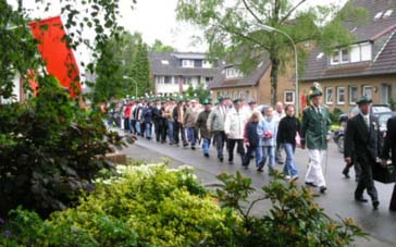 Erstmals traten die Goxeler Schützen am Rondell (Franz-Rohls-Platz) im Wohngebiet an und marschierten zur Herz-Jesu-Kirche.