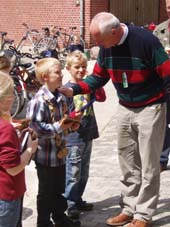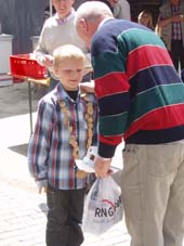 Ehrung des Kinderklumpenkönigs Jonas Hidding und seines Throns durch den Vorsitzenden Alois Bosman