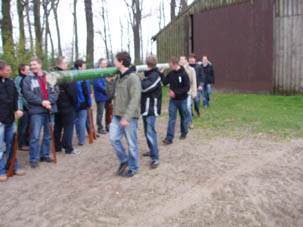 Die Jungschützen nahmen die schwere Vogelstange auf ihre Schultern...