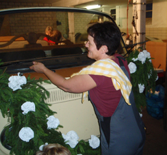 Fest in Frauenhand... Das Birkengrün wird mit bunten Rosen ausgeschmückt.