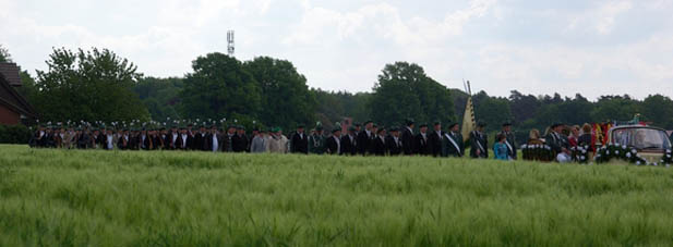 Aufmarsch auf Hölschers Festwiese nach dem Gottesdienst.