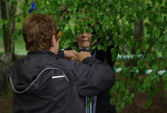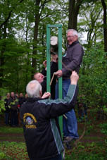 Schnell war die Vogelstange mit einem bunten Zweig geschmückt...
