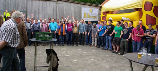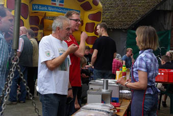 Alt und Jung treffen sich traditionell am letzten Tag des Festes an - oder besser wie in diesem Jahr bei tollem Wetter - vor der Schützenhalle.