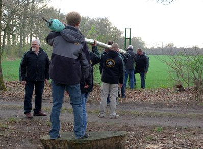Die Vogelstange wurde dann von den Jungschützen in Begleitung der kompletten Züge zum Standort getragen.