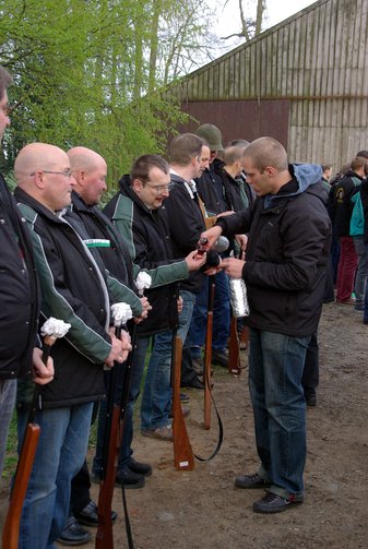 Zunächst wurden mehrere neue Mitglieder in die Schützengemeinschaft aufgenommen und mit Gewehr und Mitgliedsnummer ausgestattet.
