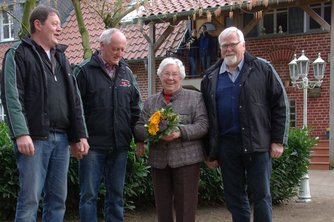 Beim Abholen der Vogelstange gab es nicht nur eine kleine Stärkung vom aktuellen Königspaar Mathias und Sara. Auch ein Ständchen mit Glückwünschen der Schützen zum Geburtstag von Ehrenvorstandsmitglied Maria Kaup wurde dargebracht.