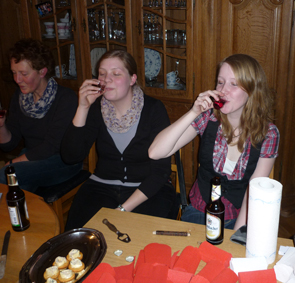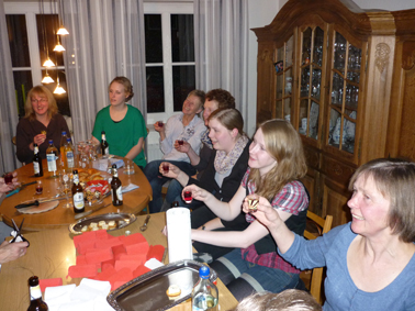 Und immer wenn es hieß: "Farbwechsel" wurde dies begossen. Der Vorschlag, im kommenden Jahr nur einfarbige Rosen zu machen, wurde allerdings einmütig abgelehnt - wen wundert es!