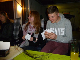 Als könnten es König und Königin Tatjana (Treptow) gar nicht mehr erwarten: bereits viele Wochen vor dem Schützenfest hatte die Königin des letzten Jahres im März die Partnerinnen der Vorstandsmitglieder zum Rosenmachen eingeladen. Auch König Markus (Wies) war natürlich dabei, als viele fleißige Hände den Schmuck für die Schützenhalle und die Gewehr der Schützen anfertigten. Und wer fleißig arbeitet darf sich ab und zu auch etwas Leckeres gönnen...