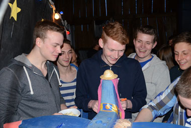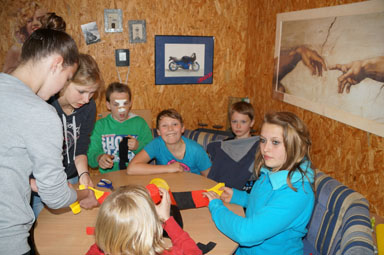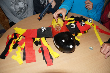 Und auch der neue Vogel für den Wettbewerb um den Kinderklumpenkönig ist fertig. Sichtlich hatte nicht nur der letztjährige Kinderklumpenthron um Vivien Pollmeyer und Patrick Kaup sondern auch die Erwachsenen Spaß beim Schmücken des Holzschuhs...