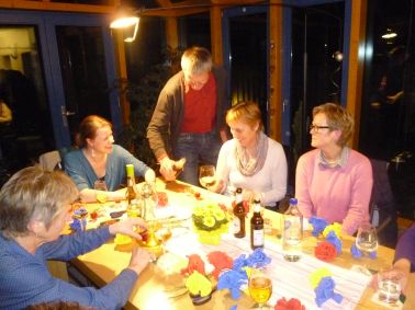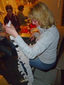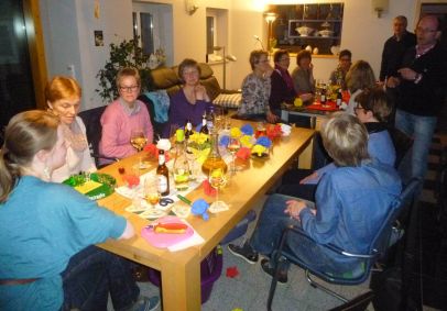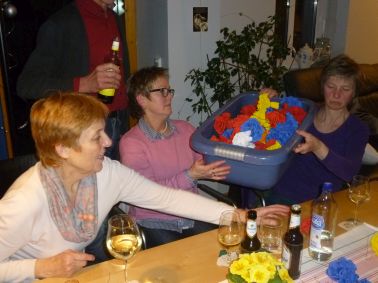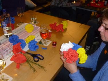Genau 60 Tage vor dem Schützenfest haben die Partnerinnen der Vorstandsmitglieder die Rosen zum Schmücken der Schützenhalle und des Königswagens sowie die Rosen für den Schmuck der Holzgewehre gefertigt. Eingeladen hatte dazu die amtierende Schützenkönigin Irmgard Lammering. Natürlich waren auch König Herbert Niehoff mit Ehrendamen und Ehrenherren mit dabei.