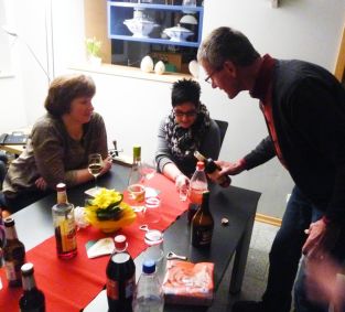Zur Stärkung gab es vor Beginn der Arbeiten einen kleinen Tropfen.