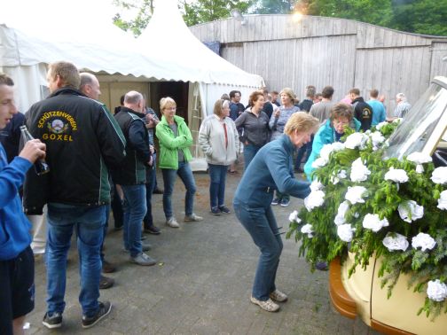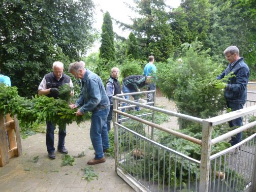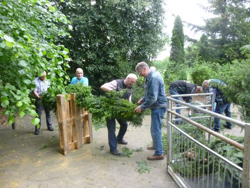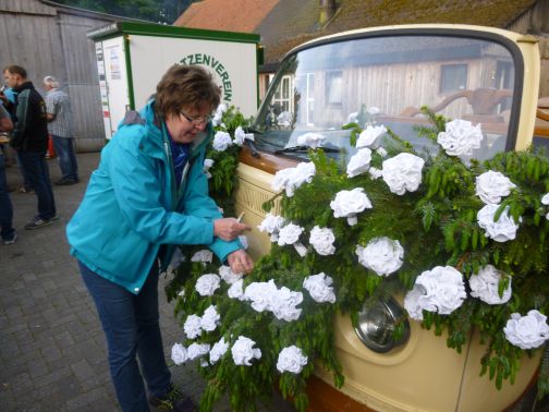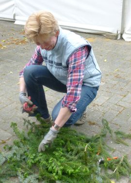 Schnell war von erfahrenen Schützen der Kranz für den Königswagen gebunden.