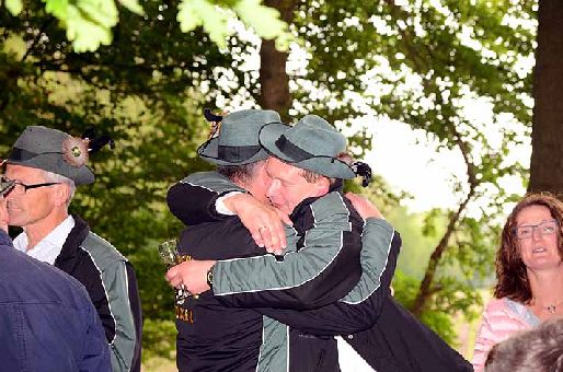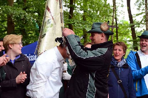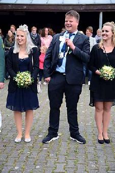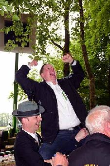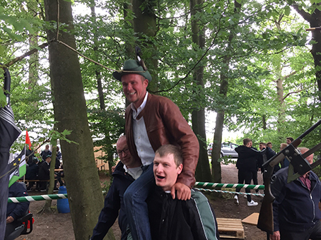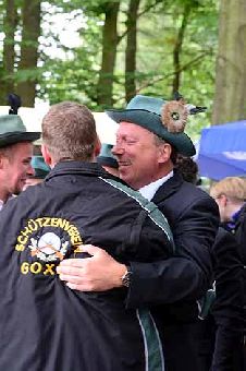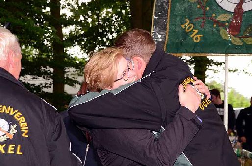 Nach weiteren 28 Schuss auf den "großen Vogel" war Daniel Hüwe der Glückliche, der sich gegen mehrere Bewerber um die neue Königswürde in Goxel durchsetzen konnte sicherte. Dass er sich riesig freute, war ihm nicht nur unmittelbar nach dem Königsschuss anzusehen sondern auch noch später. Sichtlich erfreut waren auch Daniels Ehefrau und seine Eltern, die zu den ersten Gratulanten gehörten.