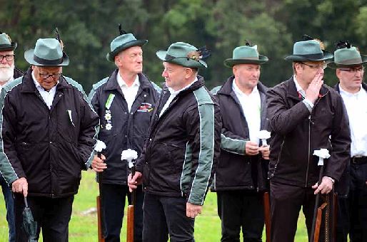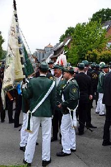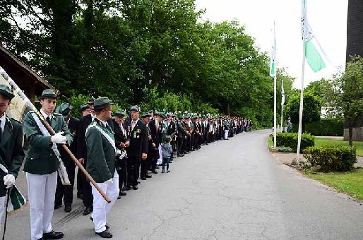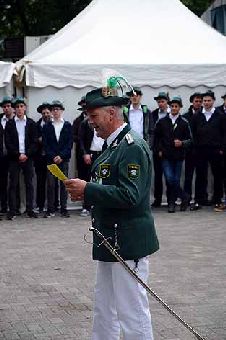 Die Blicke waren gegen dem Himmel gerichtet. Petrus verzichtete zwar auf warmen Sonnenschein, aber den leichten Regen beim Antreten am Franz-Rohls-Platz beorderte er bald zurück. So stand einem gelungenen Schützenfesttag nichts im Wege.