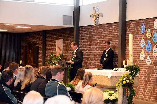 Zu Beginn der Hl. Messe gedachte der Verein der Verstorbenen. Die Totenehrung wurde von den beiden Vereinsvorsitzenden Holger Kaup und Manfred Wies vorgenommen. Noch recht frisch war dabei die Erinnerung an den vor wenigen Wochen verstorbenen Albert Kaup-Hertger und seine Mutter Maria.