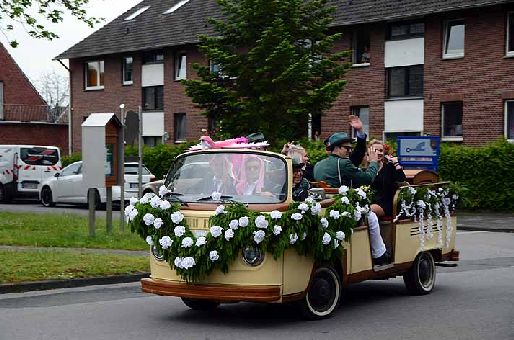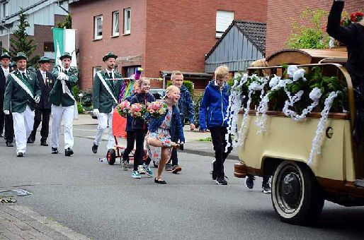 Antreten am Franz-Rohls-Platz am Morgen des Feiertages Christi Himmelfahrt 30. Mai 2019, auch das Kinderkönigspaar des Jahres 2018 war mit dabei.