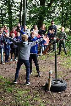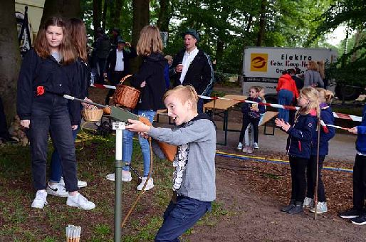 Auch der Nachwuchs ermittelte einen neuen Kinderkönig. Dazu mussten alle Einzelteile eines Papageis mit einem Gummigeschoss abgeräumt werden.