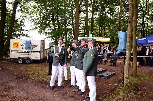 Bei der Proklamation gratulierten beide Züge der Schützen offiziell dem neuen Königsthron in Goxel