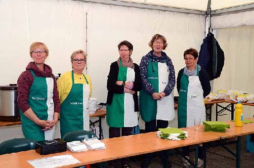 In der Schützenhalle wartete bereits das "Küchenteam", um die Stärkung in Form von Töttchen oder Gulaschsuppe auszuteilen.