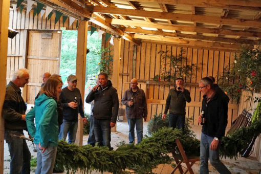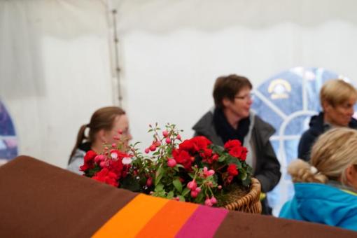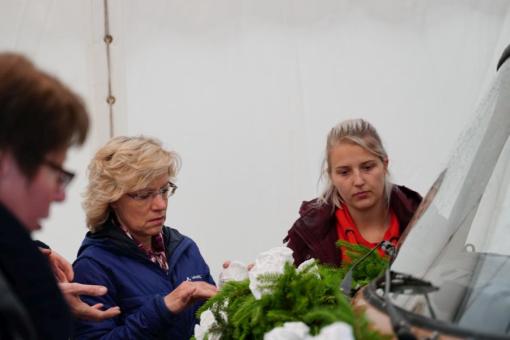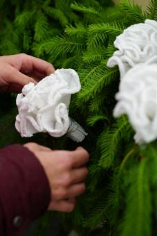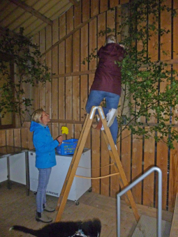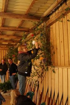 Rosen in der Schützenhalle anbringen