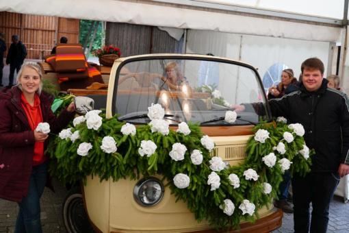 Abnahme des Wagens durch das Königspaar Johannes und Angelina.