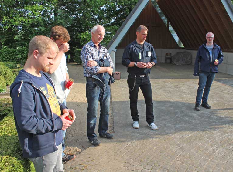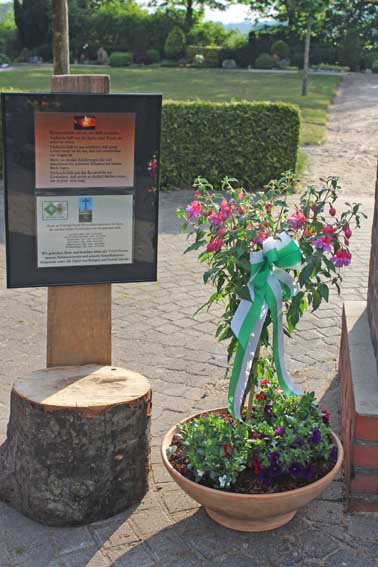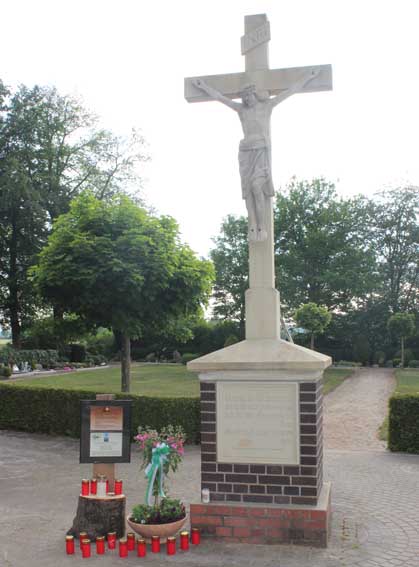 Neben einem Blumengesteck am Friedhofskreuz entzündeten sie Kerzen. Bei einem anschließenden kurzen Rundgang wurden dankbare Erinnerungen an die Verstorbenen geweckt, insbesondere an die beiden langjährigen Vorstandsmitglieder "Manni" Wies und Albert Kaup.