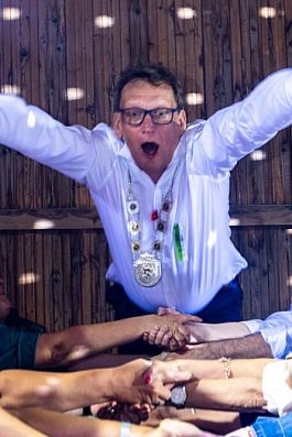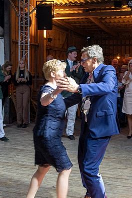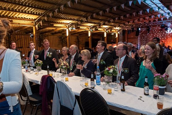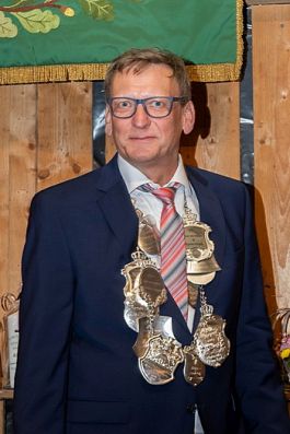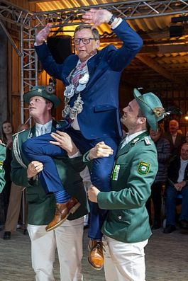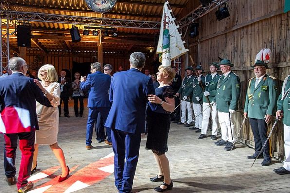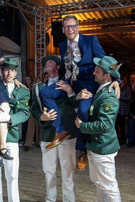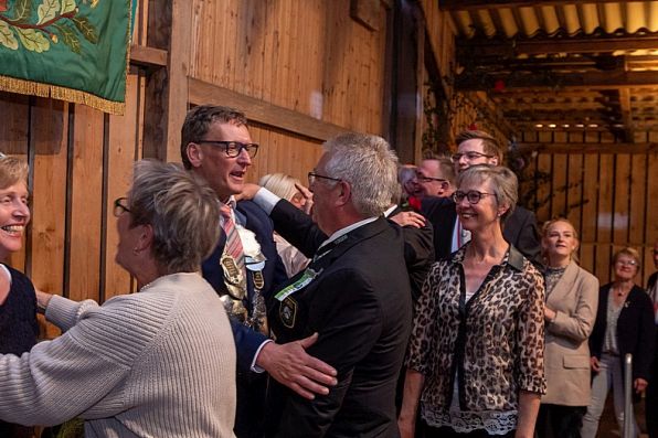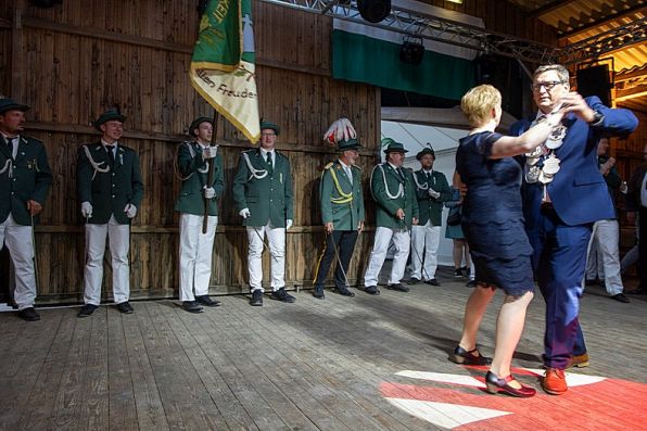 Vorsitzender Holger Kaup bat dann nach der Begrüßung der Gäste das neue Königspaar mit dem gesamten Thron zum Ehrentanz..