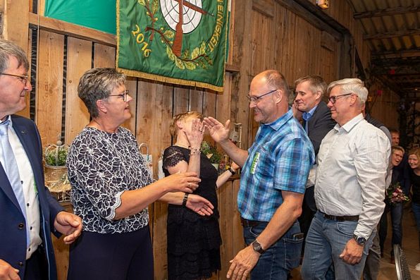 Auszeichnungen für das ausgeschiedene Königspaar Daniel Hüwe und Petra Steinkamp.