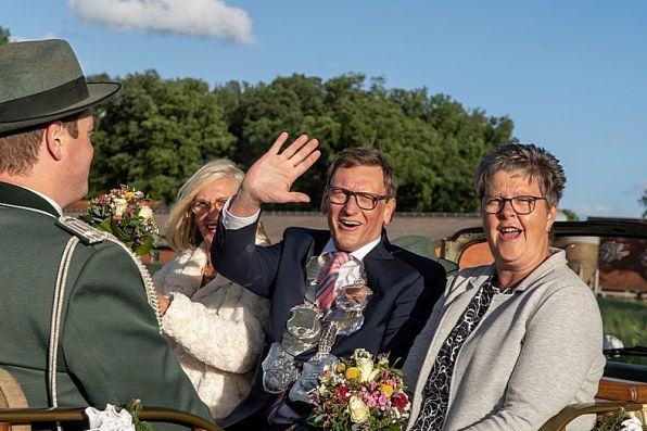 Und dann Jubel für das neue Königspaar mit Thron in Goxel ...