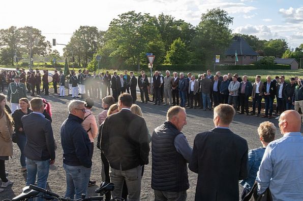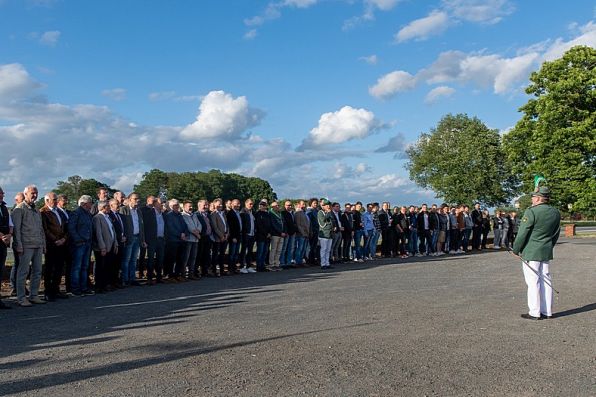 angetretene Schützen bereit, das neue Königspaar des Schützenvereins vor dem