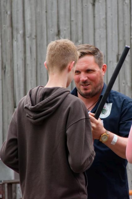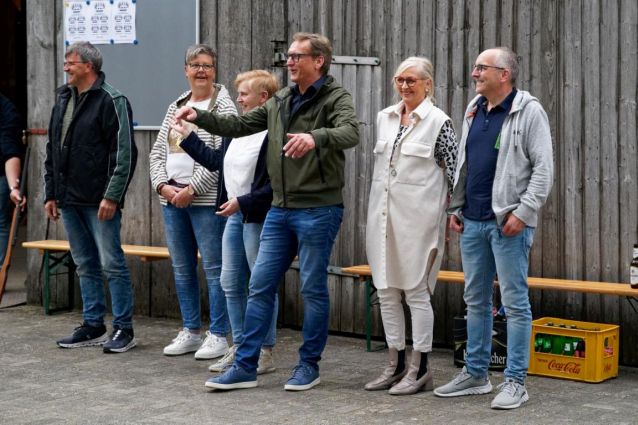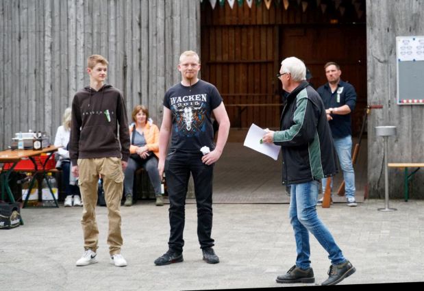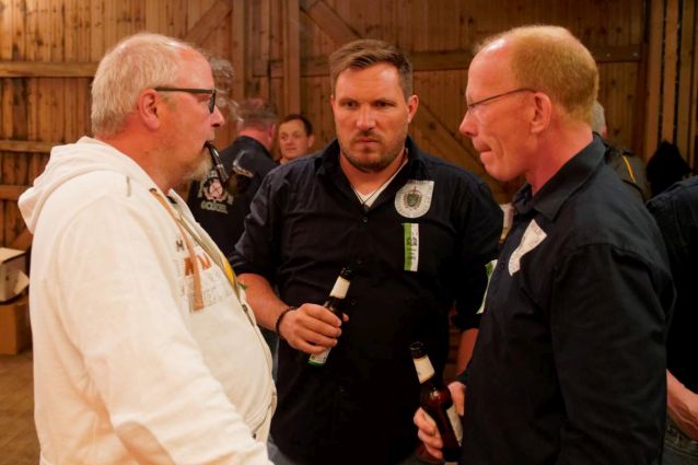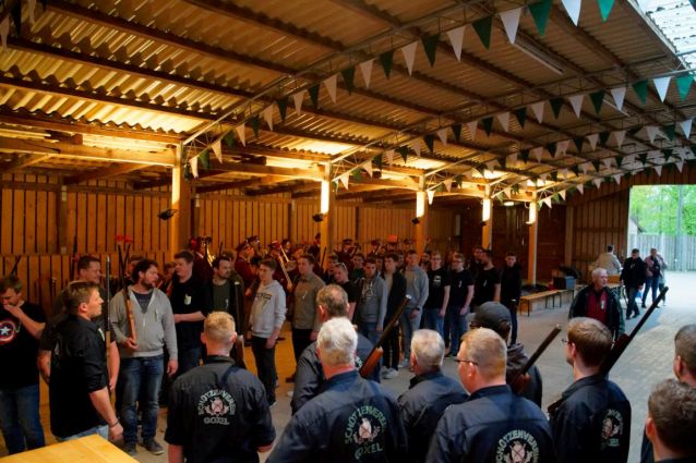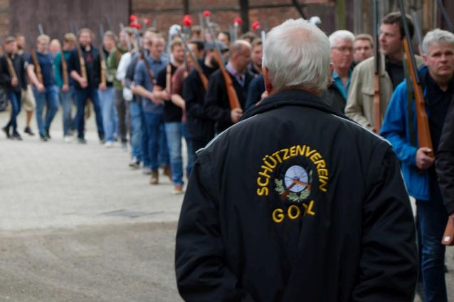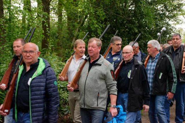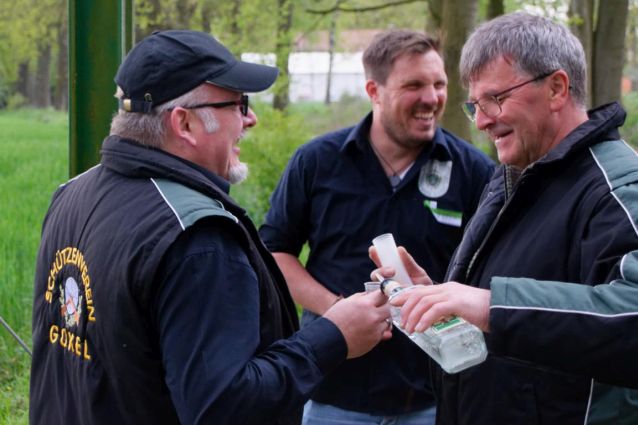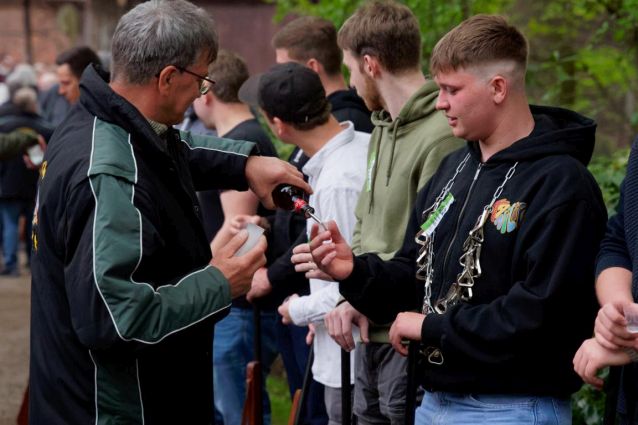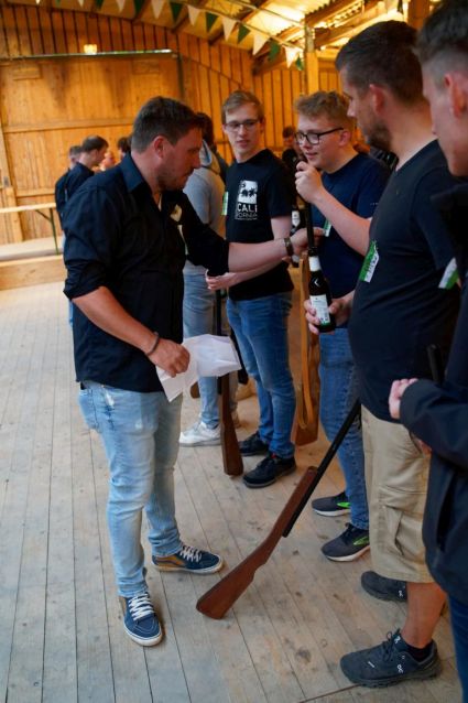 Nach dem Einmarsch war die Gewehrkontrolle schnell erledigt und die ersten Bullenköppe an den Mann gebracht, u.a. an den Vorsitzenden Holger Kaup.