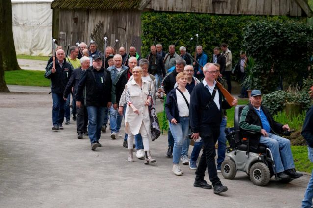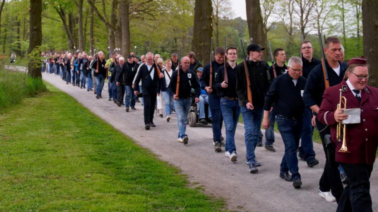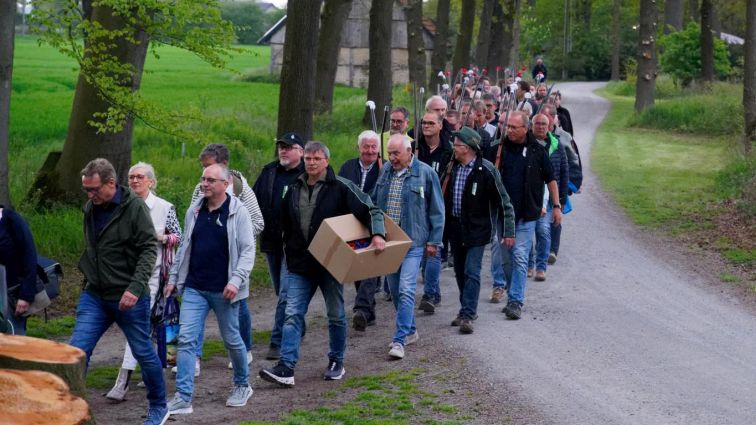 Nach getaner Arbeit erfolgte dann der Rückmarsch ins Quartier, der Schützenhalle auf dem Hof Kaup-Hertger.
