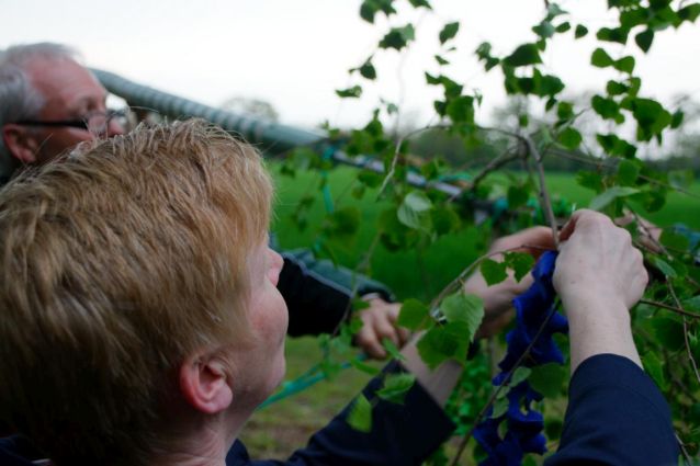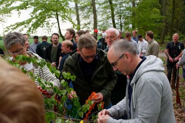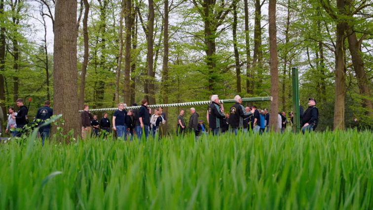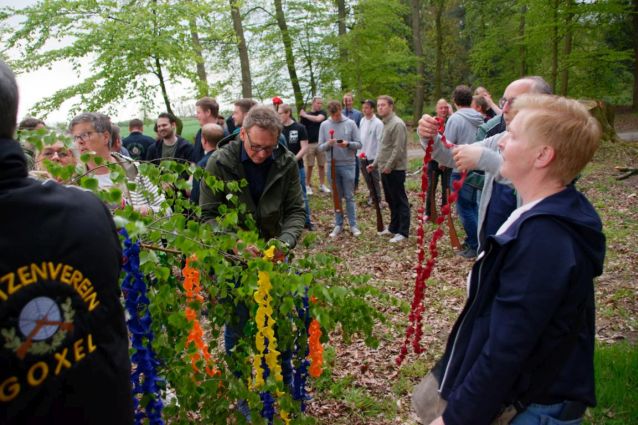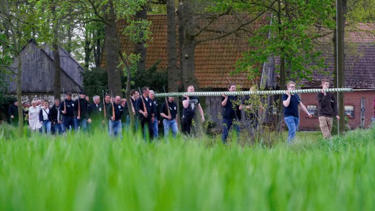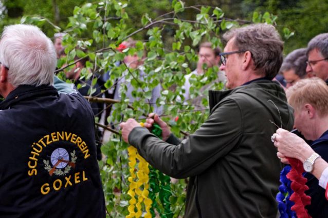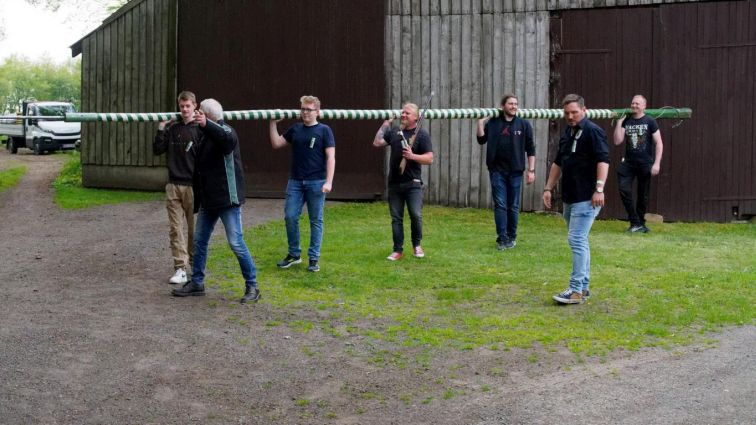 Zügig wurde die Stange aufgestellt und dann mit einem Zweig mit bunten Bändern geschmückt.
