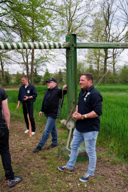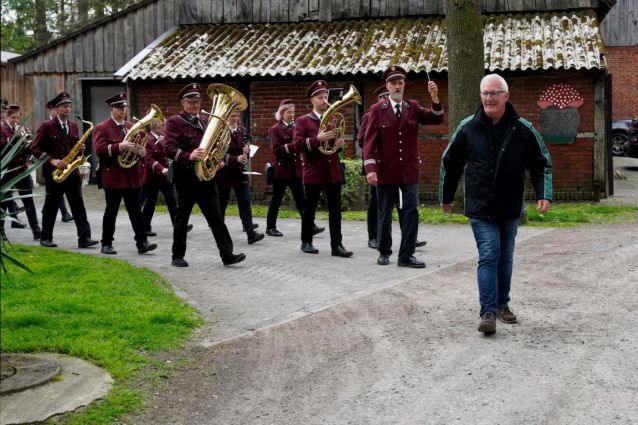 Unter zünftiger musikalischer Begleitung des JBO Hochmoorwurde dann die Vogelstange aus dem Winterquartier geholt und zur Vorgelstange gebracht.
